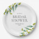 Moderne, frische Wiese  botanische Papierplatte aus Brautparty mit zartem, grünem Blattwerk in Aquarell, die Ihre Brautparty in eleganter Schrift umrahmt. von Thisisnotme© entwickelt