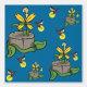 Auf einem warmen Abend, wie der Frühling dem Sommer weicht, hält ein blassgelbes Honigsauksprite auf einem Holzpfosten an, um das erste Glühwürmchen der Saison zu begrüßen.