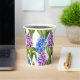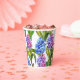 Unsere Spring Hyacinth Paper Cups sind mit natürlichen Aquarellbildern von wunderschönen Frühlingsblüten mit rosa und lila Hyazinthen ausgestattet.