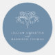 Handgezeichnet Frühjahr Lilie Stil elegante Hochzeitsaufkleber. Ein einfacher, klassischer weißer Text, der auf blau grau gezeichnet wird, mit einem eigenen Monogramm, damit Sie Ihre eigenen Initialen, Namen, personalisieren können. Andere Farben und passende Elemente sind verfügbar oder können auf Anfrage erstellt werden. © Original Hand zeichn und Design von Sarah Trett für www.mylittleedenweddings.com auf Zazzle.