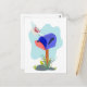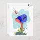Ein geflügter Umschlag, der an einen Briefkasten ankommt.