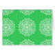 Diese weiße Mandala sitzt auf einem hellen, grünen Hintergrund. Die Farben sind belebend und hell. Teil der Sammlung Mola Mandala.