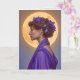 This Mucha-inspired portrait captures the spirit of spring through a dreamy, feminine lens. A pensive woman in a purple dress and matching shawl is framed by a glowing golden full moon, with blossoms woven into her hair. Evoking Belle Époque elegance and Art Nouveau romance, this greeting card carries the message inside: “May your dreams glow as brightly as your spirit.” Designed by Alma Wad using Canva AI.