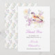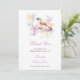 Hübsche Babydusche Dankeschön Karte mit einem bezaubernden Vogel und lila und gelben Blumen. Ideal für eine Frühjahr- oder Sommerdusche. Die Wörter können geändert werden, um Ihre eigenen Angaben oder Anforderungen Anzug