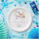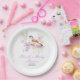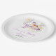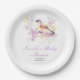 Hübsche Teller mit Babydusche mit einem hübschen Vogel und lila und gelben Blumen. Ideal für eine Frühjahr- oder Sommerdusche. Die Wörter können geändert werden, um Ihre eigenen Angaben oder Anforderungen Anzug