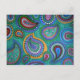 Eine Postkarte mit farbenfroher Pisley vor hellgrünem Hintergrund.