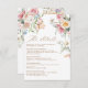 Featuring delicate pastel floral artwork, airy botanical elements, and a timeless layout, this floral wedding details card provides guests with important information such as ceremony schedule, reception timing, venue location, accommodations, and wedding website details—while maintaining an elegant, refined look.