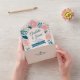The design uses a vibrant yet soft pastel palette, leaning into a spring or summer garden theme. It is framed by a playful border of stylized, multi-colored petals and leaves in shades of teal, coral, and soft pink.