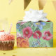 Farbenfrohe Frühlingstulips, Torfbäume und andere Blume auf grünem Hintergrund. Vintage Wasserfarbe zeichnend. Sie können die Hintergrundfarbe ändern, indem Sie auf den Button "Personalisieren" klicken und dann auf die Inschrift "Klicken Sie, um weiter anzupassen".