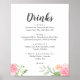 Spring Peony Wedding Drinks Menü Signatur Poster