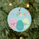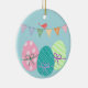 with special Spring Easter design of colourful Easter eggs against a powder blue background with pastel bunting sign of Spring Soft pastel colours for the Easter season.