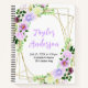 This fun and whimsical notebook features watercolor purple flowers and foliage on a gold geometric frame. The text combines handwritten script and serif fonts for a stylish and modern look. It can be personalized with your baby's birth stats, such as name, size, date and time of birth, or if you would like to give it as a shower gift you are able to edit and remove text.