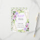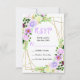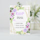 This fun and whimsical wedding rsvp enclosure card features watercolor purple flowers and foliage on a gold geometric frame. The text combines handwritten script and serif fonts for a stylish and modern look. This is perfect for a spring or summer rustic wedding.
