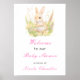 Hübsches Babyduschplakat mit einem zauberhaften Kaninchen und rosa und gelben Blumen. Ideal für eine Frühjahr- oder Sommerdusche. Die Wörter können geändert werden, um Ihre eigenen Angaben oder Anforderungen Anzug