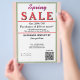 Elegant Spring Sale in pastel blush pink and sage green. Jewelry or any business type supplies. Insert Sale price and date details. Upload Your Logo, or delete to leave area blank. Insert Name and Website or other contact QR Code. Spring written in pink script. Sale written in large red typography. Thank You is written inside large white heart on backside. Original Design by TamiraZDesigns.
