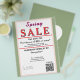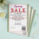 Elegant Spring Sale. Jewelry or any business type supplies. Sage green and blush pink colors. Insert Sale price and date details. Upload Your Logo, or delete to leave area blank. Insert Name and Website or other contact QR Code. Spring written in pink script. Sale written in large red typography. Thank You is written inside large white heart on backside. Original Design by TamiraZDesigns.