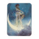 Vintage illustration of a female, representing spring, standing on the crescent moon, scattering stars throughout the sky. Painting by American artist Edwin Blashfield (1927).