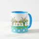 Eine sehr hübsche Coffee Tasse mit Sky Blue Rim und Handle und einem Muster goldgelber Daffodien und weißen Polka Dots auf Sky Blue. Als Teil der Posh- und Painterly "Spring Sunshine" Kollektion kann dieses Muster an jede Tasse angepasst werden.