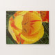 An einem frischen Frühlingstag spazieren Sie durch den Hütte-Garten und beobachten Sie den lebendigen, gelben Tulpen, der in der Brise tanzt. Mit großen, gelben Blütenblättern übersät, ist dies ein auffälliges Foto, das Ihnen das ganze Jahr über die Schönheit der Frühlingsblüten vermittelt.