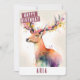 Eine niedliche Geburtstag-Karte mit einem Blumenhirsch, der den Frühling auf der Vorderseite feiert, mit "Happy Birthday" in einem weißen, klopfen Schriftart. Personalisieren Sie die Vorderseite, indem Sie Ihren Namen hinzufügen. Auf der Rückseite der Karte ist Platz für Ihre getippte oder handgeschriebene Nachricht vorhanden.