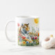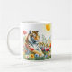 Tasse mit einem Aquarelltiger in einer Frühlingslandschaft. Personalisierbar.