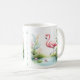 Tasse mit einem Aquarell Flamingo in einer Frühjahrslandschaft. Personalisierbar.
