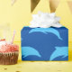 Das Umhüllungspapier ist mit einem Sprung Delphine in einem Halbtropfenreflektionsmuster ausgestattet.