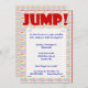 Wenn ein Gymnastik-Party Ihre folgende Angelegenheit ist, ist dieses eine perfekte Geburtstagseinladung für Ihr Kind. Mehrfarbiger "Sprung" fasst Form ein Hintergrund ab, der durch eine undurchsichtige weiße Schicht bedeckt wird, die Ihre personalisierte Benennung hält.
