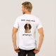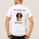 English Springer Spaniel (liver and white) looking devilishly mischievous - complete with devil horns on the front of this t shirt with an angelic springer spaniel on the back.