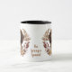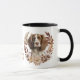 Ein hübscher Herbstkranz in den Farben Zimtbraun, Bräune und Creme umgibt das Bild eines schönen englischen Springer Spaniers. Das Hundebild wird zweimal auf der Tasse gedruckt, wobei der eigene Text dazwischen liegt.