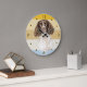 Ein Portrait eines schönen Springer Spanierhundes ist das Feature auf dieser Uhr. Das Bild wird auf einem hintersten, leicht gestreiften Hintergrund mit Sonnenuntergang platziert. Dunkle Goldzahlen und rautenförmige Marker rund um den Rand machen die Uhr leicht lesbar. Perfekt für jeden, der sein Herz an einen Spanier verloren hat.