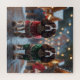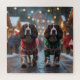 This festive design captures the joyful spirit of the holiday season, featuring an adorable dogs.Nestled in a winter wonderland, complete with a decorated Christmas tree, and beautifully wrapped presents. Snowflakes gently fall, adding a magical touch to the scene, while the vibrant colors of the holiday decorations create a warm and cheerful atmosphere.