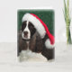 Dies ist eine Weihnachtskarte mit einem Originalfoto eines wunderschönen, leberfarbenen und weißen Springer Spaniers, der eine Weihnachtsmannmütze mit grünem Hintergrund trägt. Stellen Sie sicher, dass Sie die passende Porto-Briefmarke sehen!