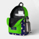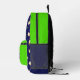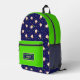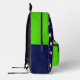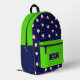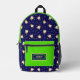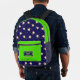 Rucksack mit lustigen Springkuchen auf dunkelblauem Hintergrund
