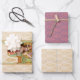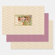 Dieses elegante Jugendstil-Postkartenbild kündigt die Ankunft des Frühlings an. Es ist eine üppige Darstellung von Farben, Mustern und Blume. Eine junge Frau Touch einen blühenden Baumzweig inmitten stilisierter Klammern, Ränder und Anhänger. Das Originalbild wurde mit einem gemusterten Hintergrund kombiniert, um die Farben und das Design der Vintagen Postkarte zu ergänzen. Dieses Set aus 3 Blättern Umhüllungspapier beinhaltet: ein Blatt mit dem auf einem goldenen und beigen Muster überlagerten Postkartenbild, ein Blatt mit goldfarbenem und beigefarbenem Gesamtbild und ein Blatt mit rosa und lavender Gesamtstruktur. Die Mustergröße ist in allen im Set enthaltenen Blättern konsistent.