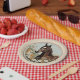 Dieses elegante Design besticht durch ein braunes Pferd mit Frühlingsblumen.