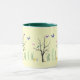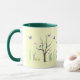 Diese Tasse erzeugt eine farbenfrohe, strahlende Frühlingsstimmung. Die Vögel fliegen und sind im Baum verankert. Schmetterlinge schweben in der warmen Luft. Enten waten im Gras. Unter den Bäumen gibt es sogar winzige Schnecken.