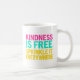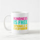 Genießen Sie Ihr Lieblingsgetränk mit einer Tagesdosis Inspiration! Dieses Design der Tasse enthält das aufregende Zitat "Kindness ist kostenlos, Sprinkle It Everywhere", das wunderschön gestaltet wurde, um Ihren Morgen zu erhellen und Sie daran zu erinnern, Positivität zu teilen. Die charmante Typografie und die herzliche Botschaft machen es zu einem idealen Ort, um Ihren Kaffee- oder Teemomenten Wärme zu verleihen. Dieses Design ist ein großartiges Geschenk für Freundschaftsaktivisten, Positivliebhaber oder alle, die gerne motivierend Zitate haben. Ideal für Zuhause, Büro oder Familienspenden, ist es einfach, jeden Tag Freundlichkeit zu streuen.