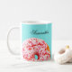 Hier finden Sie einen Donut mit hellrosa Zuckerguss und Sprinklen auf Kaffeebechern