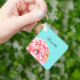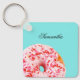 Hier gibt es einen Donut mit hellrosa Zuckerguss und Sprinklen auf Schlüsselanhängern