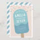 Mit diesen niedlichen popsikel-thematischen Party Einladungen für die Sommergeburtstagsfeier deines Kleinen. Im Fun Summer Design findet man eine Pop-Illustration mit blauen und aquareisen auf einem mit Sprinklen gepunkteten Hintergrund. Personalisieren Sie Ihre Party-Details in weißer Schrift.