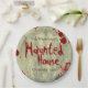 Diese gruseligen, benutzerdefinierten Halloween-Party-Teller haben ein blutiges Killer-Thema. Der Hintergrund ist mit einem grungy betonierten Wandmuster versehen, über dem sich Tropfen von Blut platzieren. Die Blutspritzen treten meist in den Ecken auf, wobei der Textbereich durch zufällige Bluttropfen hervorgehoben wird. Der Ausdruck "Spuk Haus" wird in einem finsteren Schriftart mit einer roten Farbe gedruckt, die mit dem Spritzer des Blutes übereinstimmt. Ein BeispielFamilienname wird oben mit einem Veranstaltungsdatum am unteren Rand gedruckt. Sie können die Teller individuell anpassen, um Ihren eigenen Namen und Ihren eigenen Text einzufügen.