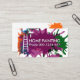 Die Abdeckung besteht aus einem Spritzer mit einer Leiter und einem Rollbürsten, die mit der Umgestaltung und Malerei beginnen. Neben der Leiter befindet sich der Firmenname "ZUHAUSE PAINTING", den Sie ändern können, sowie die Kontaktdaten. Auf der Rückseite, in einer weißen Abdeckung mit einem gelben Spritzer, oben befindet sich ein goldenes Pinsellogo, das Sie verwenden können, gefolgt von Ihrem angesehenen Namen und den Kontaktdetails. Eine tolle Karte für Maler.