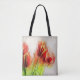 Die schöne Aquarelltasche aus Spritzer mit roten und gelben Tulpen mit grünen Blätter ist ein Genuss für viele Jahre. Ideal für Ihre Lieben