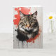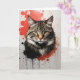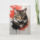 Aquarellfarben tabby Katzenportrait mit roten und schwarzen Spritzern. Blank Grußkarte zum Geburtstag, Jubiläum, neues Baby, danke, Beileid, etc.