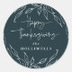 Aktualisiertes Design. Um sich mit meinem Erntedank Einladungen abzustimmen - oder die Aufkleber/Umschlag Aufkleber selbst zu benutzen. Handgezeichnete Blätter bilden einen zarten Rahmen für die Nachricht "Glückliches Dankeschön" und Ihren personalisierten Text. Dieses Aufkleber-Design ist in anderen Farben und in einer Version mit vollständig anpassbarem Text erhältlich.