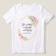 Weiches T-Shirt mit schöner floraler Schrift von Sprüche 31:25 - stilvoller Glaubensbekenntnis für alltägliches Selbstvertrauen und Inspiration.