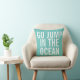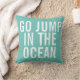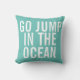 Go Jump in the Ocean Decorative Throw Kissen ist lustig, whimsical und humorvoll. Es handelt sich um ein helles aquamarines Kissen mit knalligen, weißen, fett-modernen Typografie. Word Art für Sie.