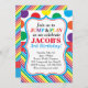 Unser bunter und Spaß Sprung, Spiel und Schlag-Party Einladung kennzeichnet Polkapunkte und -streifen in den Primärfarben und ist für Schlaghaus Ihr Kindes perfekt, bouncy, Trampoline oder stolperndes Themageburtstags-Party.