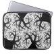 Dieses phantastische Notebook-Taschendesign wurde aus einem Fraktal erstellt. Es ähnelt einem Haufen schwarzer Bäume mit schwarzen Stämmen und verdrehten Ästen gegen einen weißen Nachthimmel. Es sieht so aus, als ob du auf dem Boden liegst und von einem dichten und spöttischen Wald aus den Himmel hinaufblickst. Lass deine Fantasie wild laufen.